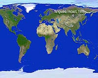 Pasadena CA (SPX) Jun 30, 2008 At around 7:17 on the morning of June 30, 1908, a man based at the trading post at Vanavara in Siberia is sitting on his front porch. In a moment, 40 miles from the center of an immense blast of unknown origin, he will be hurled from his chair and the heat will be so intense he will feel as though his shirt is on fire. The man at the trading post, and others in a largely uninhabited region of Siberia, near the Podkamennaya Tunguska River, are to be accidental eyewitnesses to cosmological history. "If you want to start a conversation with anyone in the asteroid business all you have to say is Tunguska," said Don Yeomans, manager of the Near-Earth Object Office at NASA's Jet Propulsion Laboratory. "It is the only entry of a large meteoroid we have in the modern era with first-hand accounts." While the impact occurred in '08, the first scientific expedition to the area would have to wait for 19 years. In 1921, Leonid Kulik, the chief curator for the meteorite collection of the St. Petersburg museum led an expedition to Tunguska. But the harsh conditions of the Siberian outback thwarted his team's attempt to reach the area of the blast. In 1927, a new expedition, again lead by Kulik, reached its goal. "At first, the locals were reluctant to tell Kulik about the event," said Yeomans. "They believed the blast was a visitation by the god Ogdy, who had cursed the area by smashing trees and killing animals." While testimonials may have at first been difficult to obtain, there was plenty of evidence lying around. Eight hundred square miles of remote forest had been ripped asunder. Eighty million trees were on their sides, lying in a radial pattern. "Those trees acted as markers, pointing directly away from the blast's epicenter," said Yeomans. "Later, when the team arrived at ground zero, they found the trees there standing upright -- but their limbs and bark had been stripped away. They looked like a forest of telephone poles." Such debranching requires fast moving shock waves that break off a tree's branches before the branches can transfer the impact momentum to the tree's stem. Thirty seven years after the Tunguska blast, branchless trees would be found at the site of another massive explosion -- Hiroshima, Japan. Kulik's expeditions (he traveled to Tunguska on three separate occasions) did finally get some of the locals to talk. One was the man based at the Vanara trading post who witnessed the heat blast as he was launched a few yards. His account: Suddenly in the north sky... the sky was split in two, and high above the forest the whole northern part of the sky appeared covered with fire... At that moment there was a bang in the sky and a mighty crash... The crash was followed by a noise like stones falling from the sky, or of guns firing. The earth trembled. The massive explosion packed a wallop. The resulting seismic shockwave registered with sensitive barometers as far away as England. Dense clouds formed over the region at high altitudes which reflected sunlight from beyond the horizon. Night skies glowed, and reports came in that people who lived as far away as Asia could read newspapers outdoors as late as midnight. Locally, hundreds of reindeer, the livelihood of local herders, were killed, but there was no direct evidence that any person perished in the blast. "A century later some still debate the cause and come up with different scenarios that could have caused the explosion," said Yeomans. "But the generally agreed upon theory is that on the morning of June 30, 1908, a large space rock, about 120 feet across, entered the atmosphere of Siberia and then detonated in the sky." It is estimated the asteroid entered Earth's atmosphere traveling at a speed of about 33,500 miles per hour. During its quick plunge, the 220-million-pound space rock heated the air surrounding it to 44,500 degrees Fahrenheit. At 7:17 a.m. (local Siberia time), at a height of about 28,000 feet, the combination of pressure and heat caused the asteroid to fragment and annihilate itself, producing a fireball and releasing energy equivalent to about 185 Hiroshima bombs. "That is why there is no impact crater," said Yeomans. "The great majority of the asteroid is consumed in the explosion." Yeomans and his colleagues at JPL's Near-Earth Object Office are tasked with plotting the orbits of present-day comets and asteroids that cross Earth's path, and could be potentially hazardous to our planet. Yeomans estimates that, on average, a Tunguska-sized asteroid will enter Earth's atmosphere once every 300 years. On this 100th anniversary of the Tunguska event, does that mean we have 200 years of largely meteor-free skies? "Not necessarily," said Yeomans. "The 300 years between Tunguska-sized events is an average based on our best science. I think about Tunguska all the time from a scientific point of view, but the thought of a another Tunguska does not keep me up at night." Related Links Asteroid and Comet Impact Danger To Earth - News and Science