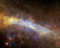 The Large Magellanic Cloud is a small neighbouring galaxy to the Milky Way. It contains many regions where clouds of gas and dust are forming new stars. One such region, surrounding the star cluster NGC 1929, is shown in close-up in this new image from ESO's Very Large Telescope. This nebula is officially known as LHA 120-N 44, or just N 44 for short. Hot young stars in NGC 1929 are emitting intense ultraviolet light and causing the gas to glow. This effect highlights the aptly-named superbubble, a vast shell of material around 325 by 250 light-years across. For comparison, the nearest star to our Sun is just over four light-years distant. The N 44 superbubble has been produced by the combination of two processes. Firstly, stellar winds - streams of charged particles from the very hot and massive stars in the central cluster - cleared out the central region. Then massive cluster stars exploded as supernovae creating shockwaves and pushing the gas out further to form the glowing bubble. Although the superbubble is shaped by destructive forces, new stars are forming around the edges where the gas is being compressed. Like recycling on a cosmic scale, this next generation of stars will breathe fresh life into NGC 1929. The image was created by ESO from observational data identified by Manu Mejias, from Argentina, who participated in ESO's Hidden Treasures 2010 astrophotography competition. The competition was organised by ESO in October-November 2010, for everyone who enjoys making beautiful images of the night sky using astronomical data obtained using professional telescopes.