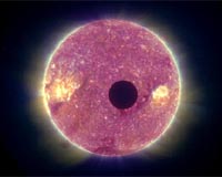 for Science@NASA Huntsville AL (SPX) Mar 16, 2007 When scientists announce they're about to calibrate their instruments, science writers normally put away their pens. It's hard to write a good story about calibration. This may be the exception: On Feb. 25, 2007, NASA scientists were calibrating some cameras aboard the STEREO-B spacecraft and they pointed the instruments at the sun. Here is what they saw: "What an extraordinary view," says Lika Guhathakurta, STEREO Program Scientist at NASA headquarters. The fantastically-colored star is our own sun as STEREO sees it in four wavelengths of extreme ultraviolet light. The black disk is the Moon. "We caught a lunar transit of the sun," she explains. The purpose of the experiment was to measure the 'dark current' of STEREO-B's CCD detectors. The idea is familiar to amateur astronomers: Point your telescope at something black and see how much 'dark current' trickles out of the CCD. Later, when real astrophotography is taking place, the dark current is subtracted to improve the image. In this case, the Moon served as a black calibration disk backlit by the sun. "The observation was no accident," she says. Mission controllers arranged the alignment with a small tweak to STEREO-B's orbit last December and engineers have been waiting for the dark current data ever since. "The images have an alien quality," notes Guhathakurta. "It's not just the strange colors of the sun. Look at the size of the Moon; it's very odd." When we observe a lunar transit from Earth, the Moon appears to be the same size as the sun-a coincidence that produces intoxicatingly beautiful solar eclipses. The silhouette STEREO-B saw, on the other hand, was only a fraction of the sun's diameter. "It's like being in the wrong solar system." The Moon seems small because of STEREO-B's location. The spacecraft circles the sun in an Earth-like orbit, but it lags behind Earth by one million miles. This means STEREO-B is 4.4 times further from the Moon than we are, and so the Moon looks 4.4 times smaller. STEREO-B has a sister ship named STEREO-A. Both are on a mission to study the sun. While STEREO-B lags behind Earth, STEREO-A orbits one million miles ahead ("B" for behind, "A" for ahead). The gap is deliberate: it allows the two spacecraft to capture offset views of the sun. Researchers can then combine the images to produce 3D stereo movies of solar storms. Of particular interest are coronal mass ejections (CMEs), billion ton clouds of electrified gas hurled into space by explosions on the sun. "STEREO's ability to see these clouds in 3-dimensions will revolutionize our understanding of CMEs and improve our ability to predict when they will hit Earth," she says. The STEREO mission is still in its early stages. The two spacecraft were launched in Oct. 2006 and reached their stations on either side of Earth in January 2007. Now it's time for check-out and calibration. The first 3D views of solar storms are expected in April. So science writers, ready your pens. If the calibration runs are any indication, the actual data will be something to write about. Related Links STEREO at Goddard Solar Science News at SpaceDaily Solar Science News at SpaceDaily