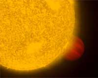 La Palma, Canary Islands (SPX) Jan 19, 2009 Two teams of astronomers have measured light emitted from extrasolar planets around sun-like stars for the first time ever using ground-based telescopes. These results were obtained simultaneously and independently by the two teams for two different planets. These landmark observations open new possibilities for studying exoplanets and their atmospheres. The measurements were conducted by a team of Astronomers from the University of Leiden, using the William Herschel Telescope (WHT) on La Palma (Canary Islands, Spain) and the United Kingdom Infrared Telescope (UKIRT) on Mauna Kea in Hawai'i. The planet, named TrES-3b, is in a very tight orbit around its host star, TrES-3, transiting the stellar disk once per 31 hours. For comparison, Mercury orbits the sun once every 88 days. TrES-3b is just a little larger than Jupiter, yet orbits around its parent star much closer than Mercury does, making it a "hot jupiter." UKIRT observations caught the transit, from which the size of the planet has been worked out extremely precisely. The WHT observations show the moment the planet moves behind the star, and allow the strength of the planet light to be measured. Astronomers have been trying to observe this effect from the ground for many years, and this is the first success. Ernst de Mooij, leader of the research team, emphasises, "while a few such observations have been conducted previously from space, they involved measurements at long wavelengths, where the contrast in brightness between the planet and the star is much higher. These are not only the first ground-based observations of this kind, they are also the first to be conducted in the near-infrared, at wavelengths of 2 micron for this planet, where it emits most of its radiation." Fellow researcher Dr Ignas Snellen adds, "we have been able to measure the temperature of TrES-3b to be a bit over 2000 Kelvin. "Since we know how much energy it should receive by the type of its host star, this gives us insights into the thermal structure of the planet's atmosphere, which is consistent with the prediction that this planet should have a so-called 'inversion layer.' It is absolutely amazing that we can now really probe the properties of such a distant world." An atmospheric inversion layer is a layer of air where the normal change of temperature with altitude reverses. For example, while we are all familiar with the general decrease of the air temperature as we rise above the ground, often there is a point (usually at a good few thousand feet) where the temperature starts to increase again. This inversion layer prevents air below the inversion layer from escaping to higher altitude. Many places on Earth have strong inversion layers, such as big cities with lots of pollution. Mauna Kea in Hawai'i has a tropical inversion layer about 2,000 feet thick, which usually sits well below the summit. It is this inversion layer that isolates the upper atmosphere from the moist maritime air at lower levels, ensuring that the summit skies are dry and clear, making Mauna Kea such an excellent observing site. It is interesting that the world's great observatories are situated above inversion layers and are now being used to study inversions in planetary atmospheres outside our own solar system. Current theory says that there are two types of "hot jupiters," one with an inversion layer, and one without. The type is predicted to depend on the amount of light the planet receives from its star. If the inversion layer could be confirmed, for example by measurements at other wavelengths, these observations would fit in perfectly with this theory. Measuring the emitted light from a planet at different wavelengths reveals the planet's spectrum. This spectrum can be used to determine the planet's day-side temperature. In addition, this spectrum will depend on many physical processes in the planet's atmosphere, such as absorption by molecules like water, carbon monoxide and methane, redistribution of heat around the planet, and temperature structure as a function of height (the aforementioned inversion layer). It will be very useful to be able to compare these for different planets in different environments. "The shorter infrared wavelength targeted in our work is where the planet emits most of its energy and where the molecules have the most influence on the spectrum," says de Mooij. Alongside the discovery of de Mooij and Snellen, a second team has made a ground-based detection of a different extrasolar planet, OGLE-TR-56b, at the wavelength of 1 micron. Both landmark observations will open up a new window for studying exoplanets and their atmospheres using ground-based telescopes. They show great promise for using future extremely large telescopes which will have much higher sensitivity than the telescopes used today. Professor Gary Davis, Director of UKIRT, said "this first direct detection of light emitted by another planet, using existing telescopes on the ground, is a major milestone in the study of planets beyond our own Solar System. This is a very exciting scientific discovery, and it nicely demonstrates that existing telescopes like UKIRT and WHT continue to deliver results at the forefront of astronomical research." "Ground-based K-band detection of thermal emission from the exoplanet TrES-3b" (15 January 2009, Volume 493, Issue No.2, pp L31-34); and "Ground-based secondary eclipse detection of the very-hot Jupiter OGLE-TR-56b" also 15 January 2009, Volume 493, Issue No.2) Related Links Planet TrES3b Lands Beyond Beyond - extra solar planets - news and science Life Beyond Earth