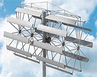 London, UK (SPX) Oct 17, 2008 A radical new design in wind turbines - the AeroCam from BroadStar Wind Systems - will make its European debut here at one of the largest renewable energy conferences ever held in the U.K. BroadStar, an engineering and technology firm specializing in wind power generation, is exhibiting a full-size version of its new AeroCam at the BWEA30 event at the ExCeL Centre in London October 21-23. BroadStar made its first public appearance in the U.S. in June, where the launch of its AeroCam followed four years of research and development, and the issue of patents earlier this year. Keen interest in the commercial-scale turbine already has been expressed by 27 leading U.S. corporations eager to reduce their energy costs. BroadStar wants to draw similar attention in Europe, where it is pursuing its first beta test sites with interested customers. The innovative AeroCam turbine uses horizontal blades arranged in a rotating cylindrical structure, which can be placed on buildings or to infill existing wind farms. With its parallel rotor blades giving it the appearance of a water wheel, not only does it look radically different from traditional windmill-like designs, but also it is more aerodynamically efficient, smaller and more compact. This means it can be manufactured, transported, installed and maintained at lower cost. Currently there are very few commercial-scale turbines in the 100kW to 500kW class served by the AeroCam. Traditional propeller designs need to be manufactured at the largest possible size for aerodynamic efficiency. This means producing 1.5MW turbines and upwards, which increases their cost and limits their application to remote areas. "Our field trials and wind tunnel tests confirm that our new design has a higher power density than conventional wind turbines and the blades can be smaller without compromising aerodynamic efficiency," says Stephen Else, president of BroadStar Wind Systems. "It can also harness its power in many more locations and generate energy close to where it"s actually required." The main technical innovation in the AeroCam design is its ability to continually adjust the pitch of its rotor blades to an optimum angle as the turbine rotates. This unique active pitch control capability helps optimize its aerodynamic performance for the same reasons a bird changes the shape of its wings in flight. The result is a wind turbine that can handle a wide range of wind velocities, anywhere between 4 and 80 mph (6-130km/h). It also generates its power at lower rotational speed, so there is less noise and vibration, hence less wear and tear. The AeroCam has a very low start-up speed, requiring a wind velocity of just 4 mph (6km/h), and it starts generating power at an unprecedented 5 mph (8km/h), a much lower wind speed than traditional wind turbines. "This is a new and exciting breakthrough in wind energy technology with huge potential to reduce soaring energy costs," says Else. "The London event provides a great opportunity for our European debut, where we can discuss the unique benefits of the AeroCam with industry experts and distributors and a variety of potential customers, including architects, wind farmers, urban developers, commercial companies and government bodies." "The AeroCam has the potential to equip almost every local community, business and government building with its own source of renewable energy and it can also supplement conventional turbines in existing wind farms, significantly increasing the output of electricity." Related Links BroadStar Wind Systems Powering The World in the 21st Century at Energy-Daily.com