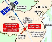 Beijing (AFP) Jan 23, 2007 China publicly confirmed for the first time on Tuesday that it had tested a satellite-destroying weapon, but insisted its space programme was of no threat to the rest of the world. However China's breaking of its silence -- 12 days after the event and following intense diplomatic pressure -- failed to quell international concerns the event triggered about the Asian giant's rising military power and a potential arms race in space. Japan said its national security had been threatened and demanded a better explanation from Beijing, while Taiwan warned China's actions had endangered regional peace. "Regarding having conducted the test, China has already notified other parties," Chinese foreign ministry spokesman Liu Jianchao told reporters, naming the United States and Japan as nations that had been directly told. "But China stresses that it has consistently advocated the peaceful development of outer space and it opposes the arming of space and military competition in space. "China has never, and will never, participate in any form of a space arms race." The White House said last week that China had used a missile to destroy an old Chinese weather satellite on January 11, making it the third country after the United States and the former Soviet Union to shoot down an object in space. The test meant that China could theoretically shoot down spy satellites operated by other nations. The US, Japan and others had also complained that China had failed to adequately explain why it had gone ahead with the test. Liu dismissed complaints that China had not been transparent about the issue. "China has nothing to hide. After the relevant parties expressed their concerns, we made our response quickly," he said. "Since many countries have expressed concern, there was a need to explain... on this issue, China has been responsible." But Japan said on Tuesday after Liu's announcement that it was not satisfied. "The destruction of a satellite by a ballistic missile... raises great concerns in our country from the viewpoint of the safe use of outer space, as well as national security," Chief Cabinet Secretary Yasuhisa Shiozaki said. The top government spokesman said the Chinese foreign ministry had informed the Japanese embassy in Beijing on Monday that China had conducted "one experiment in space recently." "It was insufficient," Shiozaki said of the notification. "If transparency is not properly ensured in such a case, it provokes doubts and fears," he said. Taiwan said China's actions in developing space weaponry and deploying more ballistic missiles targeting the island were endangering regional peace. "Should war break out in the Taiwan Strait, China would be able to use its anti-satellite weaponry to attack the military satellites of other countries," including those of the United States, air force Major General Wang Cheng-hsiao told reporters. Analysts say Taiwan does not operate its own spy satellites, but relies heavily on US satellites for intelligence information on the Chinese military. China regards Taiwan as a renegade province that must eventually be reunified with the mainland, by force if necessary. After destroying satellites in space in the 1980s, the United States and the Soviet Union ended their programmes, largely because of the problem of debris. But despite US protests against China, President George W. Bush's administration has opposed international calls to end all tests, saying in a policy paper last year the United States had the right to "freedom of action" in space. Analysts have said Washington is concerned that China's test has shown it is starting to make inroads into the US' virtual supremacy in space, and highlights Beijing's rising military power. The US Defense Department says China is spending two to three times more on its military than the 35 billion dollars a year it has acknowledged.