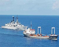 Copenhagen (AFP) Jan 2, 2009A Danish anti-piracy warship rushed to the rescue of a cargo ship in the Gulf of Aden Friday and also rescued the five pirates attacking the ship after they were forced into the water, the Danish navy said. |