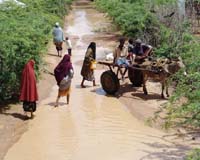 Kampala (AFP) Aug 18, 2007 Heavy rains continued to wreak havoc in East Africa Saturday, as floods that have already displaced hundreds of thousands heightened fears of food shortages and disease outbreaks across the region. In Kampala, Uganda's minister for relief, disaster preparedness and refugees, Musa Ecweru, said high waters had submerged entire villages and destroyed many farms in the east of the country. "Many people have sought refuge in churches and raised grounds, while others have left the affected areas to live with relatives in other places and food crops in gardens have been destroyed," Ecweru told reporters. The minister estimated the number of people displaced by the floods to be around 150,000. "Cholera cases have been reported and we are working with the health ministry to mitigate the problems," he added. Ecweru said the government would on Monday begin ferrying food to those affected by the floods in eastern regions, better known for the recurrent droughts that normally plague the nomadic pastoralists living there. The minister gave the example of Abalirela, where the entire population of 30,000 had only recently returned after having been driven off by the 2003 raids of the rebel Lord's Resistance Army (LRA). "These people had just returned home and started cultivating their own food. The floods have again displaced them and all the food crops are destroyed," Ecweru said. Neighbouring regions in Kenya have also been affected, with more than 1,000 families displaced after heavy rains in the western highlands caused a river to burst its banks and flood villages. "More families have been marooned and we are in the process of rescuing them," Anthony Mwangi of the Kenya Red Cross Society told AFP. "No one has died, no one has been injured and everybody has been accounted for." Mwangi warned that the persistent rains risked causing the river Nzoia to breach another dyke and flood more villages. In Sudan, six weeks of deluge have directly affected at least 365,000 people, destroyed crops, food stocks, farmlands and livestock, according to the United Nations, which has launched an appeal for funds. In a statement released on Friday, the UN mission in Sudan said some 150,000 people had been left without shelter, mainly in the south of the country. Floods affecting several areas of Sudan have so far killed 64 people. On Wednesday, the World Health Organisation said an outbreak of cholera had killed 49 people and affected 700 others in northeastern regions. The UN humanitarian agency has predicted that the rains will persist until the middle of next month. In nearby Eritrea, heavy rain in the western lowlands have delayed crop planting and washed away bridges. In late July, more than 10,000 people had been displaced by heavy rains in western Ethiopia. Last year, more than 600 people were killed and hundreds of thousands affected by unusually heavy floods that ravaged several regions in Ethiopia. burs-oto/jmm/mh Related Links Bringing Order To A World Of Disasters When the Earth Quakes A world of storm and tempest