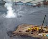 Jakarta (AFP) March 14, 2007 Toxic sludge is spewing much more slowly from an Indonesian "mud volcano" after an innovative bid to staunch the flow which has displaced 15,000 people, an official said Wednesday. Estimates had suggested 125,000 to 160,000 cubic metres of mud flowed from the crater daily, equivalent to the volume of about 40 to 50 Olympic size swimming pools. An experimental attempt to partially plug the mud crater with chains of heavy concrete balls is underway, but some say it will not work. "We estimate a decrease of around 80,000 to 90,000 cubic metres a day," Rudy Novrianto, a spokesman for the government team handling the crisis, told AFP. But he added the team was trying to devise more accurate ways of measuring the flow. The assessment is currently based partly on how much mud is held back behind emergency dykes, which keep breaking and spilling the sludge. Workers at the crater near Indonesia's second-largest city of Surabaya aim to staunch the mudflow by 50-70 percent by dropping the chains of balls into the hole. Umar Fauzi, a physicist from Indonesia's Bandung Institute of Technology, which devised the concrete ball plan, said all the 374 chains initially planned would be dropped into the crater this week, with 314 deposited already. "We should be able to put in all chains of concrete balls in two days," he told AFP. He said there had been an increase in gas emissions from the crater, which could be because of lower mud pressure -- although the gas, rising in thick white plumes, is poisonous. Fauzi said the team would make an evaluation after reaching the target of 374 but continue inserting more chains to slow the flow. President Susilo Bambang Yudhoyono last week ordered the effort to continue for another month. The government expects to spend around 370 million dollars tackling the phenomenon. About 3,000 residents from the crater's site in Sidoarjo, East Java, who have yet to be compensated after the mud swamped their homes, plan to demonstrate at the presidential palace in Jakarta, state media said. The hot mud began bubbling up from deep underground in late May last year after exploratory gas drilling at the site by local firm PT Lapindo Brantas. The sludge has inundated some 600 hectares (1,500 acres), including many homes, and threatens to swamp a key railway, which is to be rerouted away from the danger zone. Experts are unsure how long the crater will spew mud if left unchecked, with some suggesting it could be years.