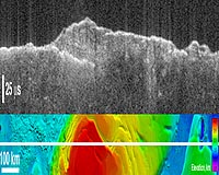 Paris, France (ESA) Mar 16, 2007 The amount of water trapped in frozen layers over Mars' south polar region is equivalent to a liquid layer about 11 metres deep covering the planet. This new estimate comes from mapping the thickness of the dusty ice by the Mars Express radar instrument that has made more than 300 virtual slices through layered deposits covering the pole. The radar sees through icy layers to the lower boundary, which in places is as deep as 3.7 kilometres below the surface. "The south polar layered deposits of Mars cover an area as wide as a big portion of Europe. The amount of water they contain has been estimated before, but never with the level of confidence this radar makes possible," said Dr Jeffrey Plaut of NASA's Jet Propulsion Laboratory, Pasadena (California), co-Principal Investigator for the radar and lead author of the study. The instrument, named the Mars Advanced Radar for Subsurface and Ionospheric Sounding (MARSIS), is also mapping the thickness of similar layered deposits at the north pole of Mars. "Our radar is doing its job extremely well," said Prof. Giovanni Picardi of the University of Rome 'La Sapienza', Principal Investigator for the instrument. "MARSIS is showing to be a very powerful tool to probe underneath the Martian surface, and it's showing how our team's goals - such as probing the polar layered deposits - are being successfully achieved," he continued. "Not only MARSIS is providing us with the first ever views of Mars' subsurface at those depths, but the details we are seeing are truly amazing. We are expecting even greater results when we will have concluded an on-going, sophisticated fine-tuning of our data processing methods. These should enable us to understand even better the surface and subsurface composition." Polar layered deposits hold most of the known water on modern Mars, though other areas of the planet appear to have been very wet at times in the past. Understanding the history and fate of water on Mars is a key to studying whether Mars has ever supported life, because all known life depends on liquid water. Plaut, Picardi and 22 other researchers report analysis of the Mars Express radar instrument's south polar observations in the online edition of the journal Science this week. The polar layered deposits extend beyond and beneath a polar cap of bright-white frozen carbon dioxide and water at Mars' south pole. Dust darkens many of the layers. However, the strength of the echo that the radar receives from the rocky surface underneath the layered deposits suggests the composition of the layered deposits is at least 90 percent frozen water. One area with an especially bright reflection from the base of the deposits puzzles researchers. It resembles what a thin layer of liquid water might look like to the radar instrument, but the conditions are so cold that the presence of melted water is deemed highly unlikely. Detecting the shape of the ground surface beneath the ice deposits provides information about even deeper structure of Mars. "We didn't really know where the bottom of the deposit was," Plaut said. "We can see now that the crust has not been depressed by the weight of the ice as it would be on the Earth. The crust and upper mantle of Mars are stiffer than the Earth's, probably because the interior of Mars is so much colder." The results appear in the 15 March 2007 issue of the Science magazine, in an article by J. Plaut, G. Picardi et al., titled: "Subsurface Radar Sounding of the South Polar Layered Deposits of Mars." Related Links Mars Express instruments MARSIS team website MARSIS at NASA JPL Mars News and Information at MarsDaily.com Mars News and Information at MarsDaily.com Lunar Dreams and more