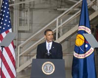 President Outlines Exploration GoalsKennedy Space Center FL (SPX) Apr 16, 2010 Astronauts will soar spaceward in commercial spacecraft while NASA develops technology so humans can venture to Mars and out into the solar system, President Barack Obama told a space conference Thursday at NASA's Kennedy Space Center in Florida. Laying out his plans, President Obama committed NASA to a series of development milestones he said would lead to new spacecraft for astronauts to ... read more |