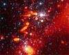 Pasadena CA (SPX) Dec 17, 2008Some stars have it tough when it comes to raising planets. A new image from NASA's Spitzer Space Telescope shows one unlucky lot of stars, born into a dangerous neighborhood. The stars themselves are safe, but the material surrounding them - the dusty bits of what might have been future planets - can be seen blowing off into space. |