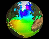 Plankton bloom in the Baltic Cipollini cited a recent modelling study by Canadian researchers that shows planetary wave speed is expected to increase considerably during this century as a side effect of climate change induced warming of the oceans, which may have a number of far-reaching effects on ocean dynamics. "It is no surprise, then, that scientists are eager to better understand these phenomena - and satellites provide both the indispensable validation of the theoretical hypotheses and the stimulus for new ideas," Cipollini said. Sea surface temperature (SST) is one of the most stable of several geographical variables which, when determined globally, helps diagnose the state of the Earth's climate system. Professor David Llewellyn-Jones, Head of Earth Observation Science at the University of Leicester, UK, outlined the importance of SST data at the symposium. Tracking SST over a long period is arguably the most reliable way researchers know of measuring the precise rate at which global temperatures are increasing and improves the accuracy of our climate change models and weather forecasts. "There is now evidence there is a distinctive upward trend in global sea surface temperatures, and this we can now see from measurements made from Envisat," Professor Llewellyn-Jones said. Working like thermometers in the sky, a number of different satellite instruments measure SST on an ongoing basis, such as the AATSR aboard ESA's Envisat. The AATSR instrument aboard Envisat and its predecessors, ATSR-1 and ATSR-2 on the ERS-1 and -2 satellites, has been providing researchers with a precise quantitative indication of the changes and variability associated with the climate system over the past 16 years. "Thanks to a new archive of uniformly processed data from 1991 to the present day, which is due to be launched later this year, it will soon be possible to provide a definitive statement of the rate at which global temperatures have been changing and how the variability of our climate has been changing," Llewellyn-Jones said. "The ATSR instrument produces data of unrivalled accuracy on account of its unique dual view of the Earth's surface, whereby each part of the surface is viewed twice, through two different atmospheric paths," Llewellyn-Jones added. "This not only enables scientists to correct for the effects of dust and haze, which degrade measurements of surface temperature from space, but also enables scientists to derive new measurements of the actual dust and haze, which are needed by climate scientists." Related Links Envisat overview ERS overview Learn about Climate Science at TerraDaily.com Climate Science News - Modeling, Mitigation Adaptation